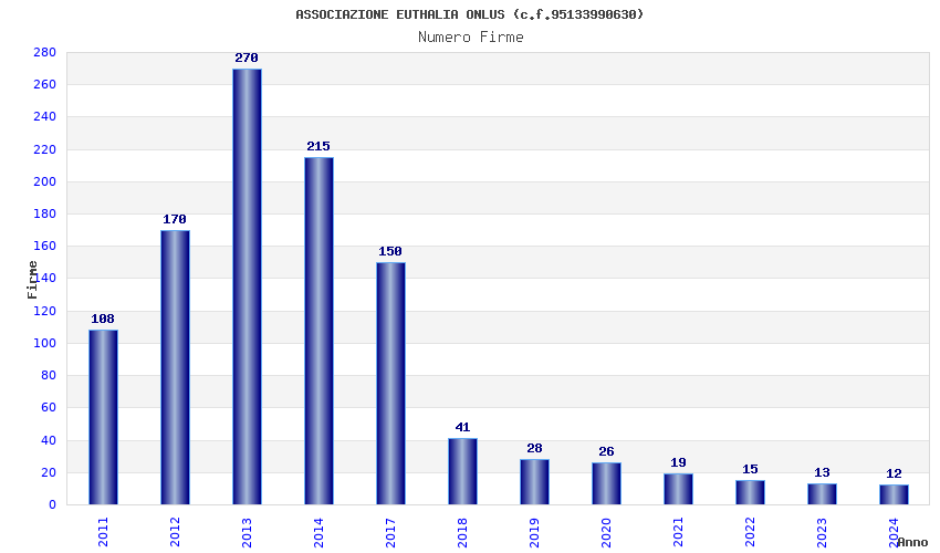 | Anno | Firme | Importi | Media | Naz. | Reg. | Prov. | Comu. |