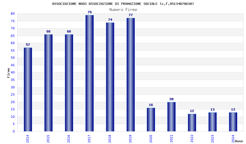 | Anno | Firme | Importi | Media | Naz. | Reg. | Prov. | Comu. |