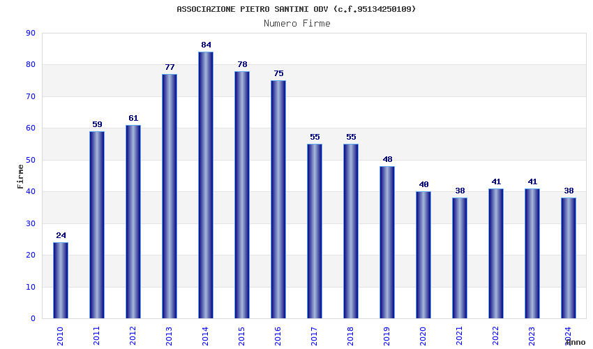 | Anno | Firme | Importi | Media | Naz. | Reg. | Prov. | Comu. |