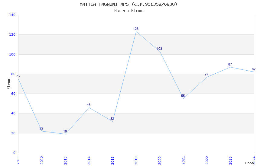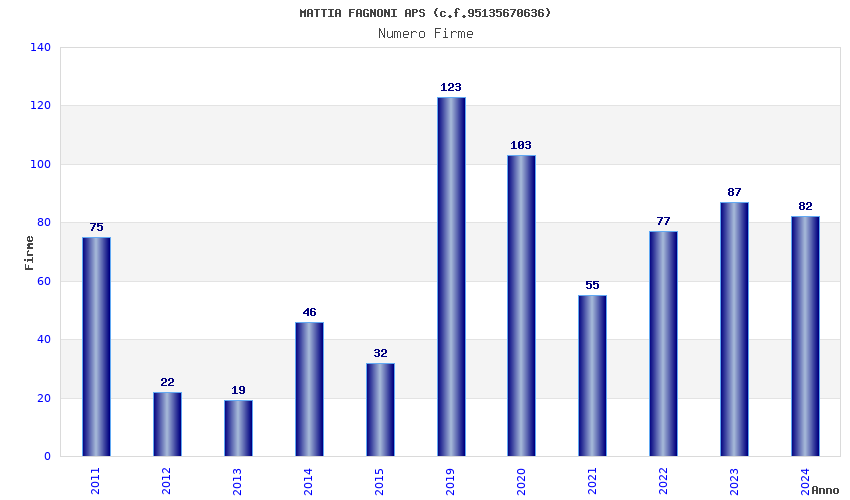 | Anno | Firme | Importi | Media | Naz. | Reg. | Prov. | Comu. |