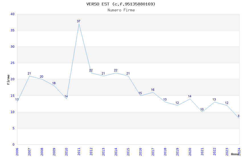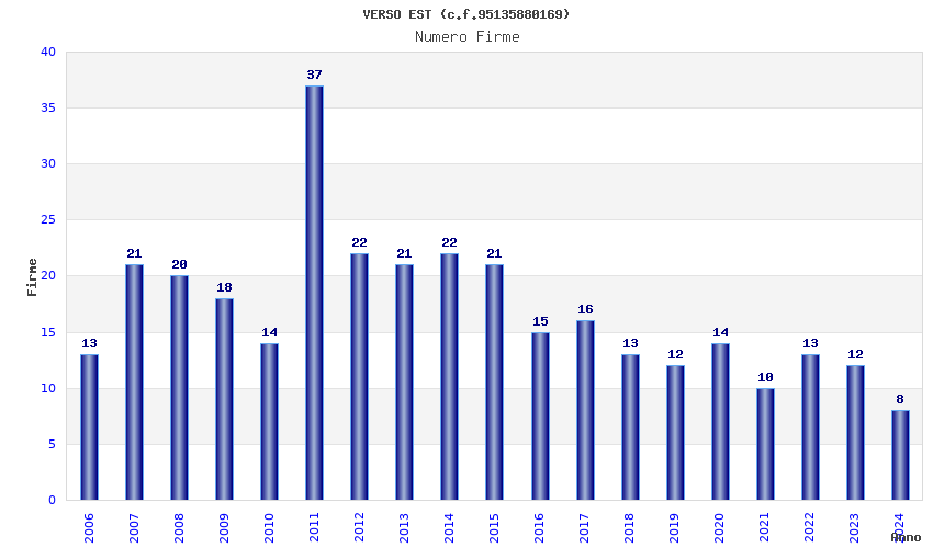 | Anno | Firme | Importi | Media | Naz. | Reg. | Prov. | Comu. |