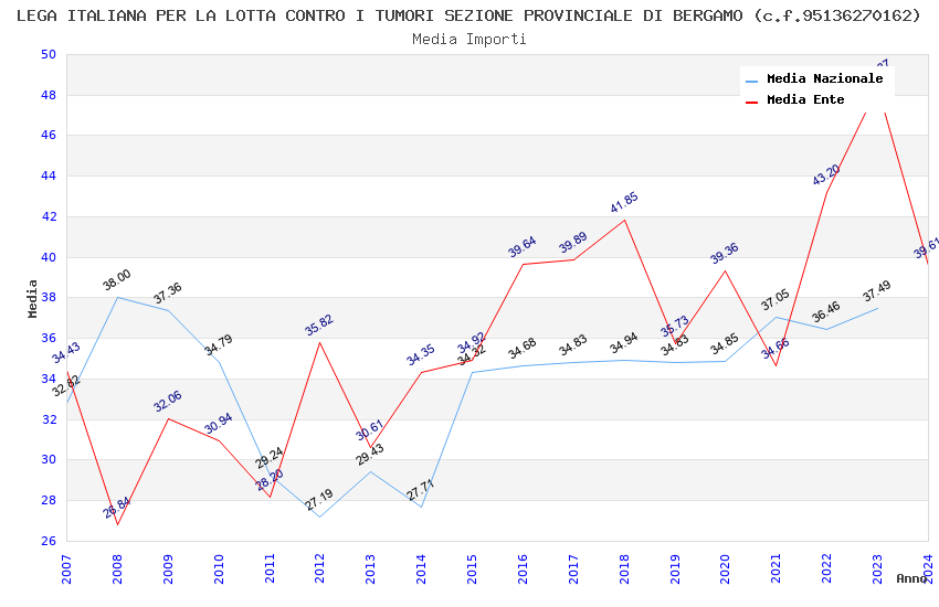| Anno | Firme | Importi | Media | Naz. | Reg. | Prov. | Comu. |