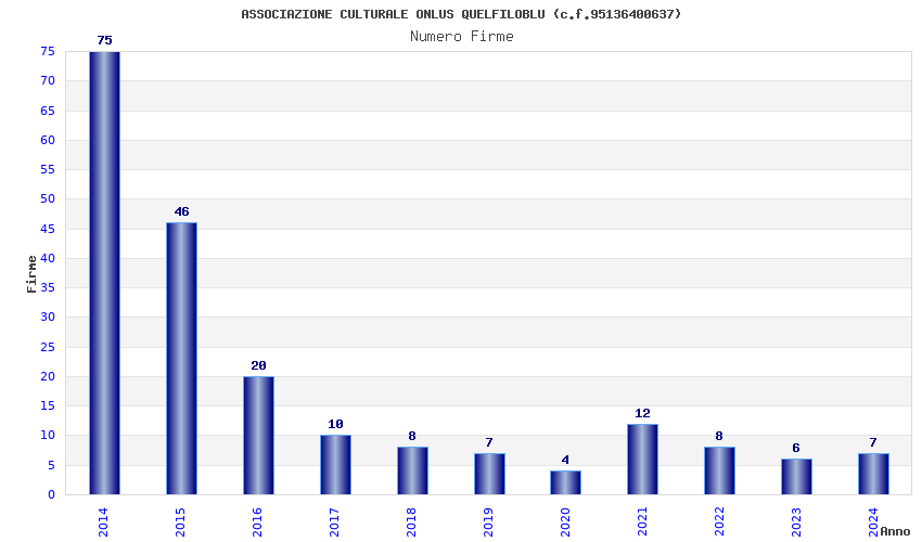 | Anno | Firme | Importi | Media | Naz. | Reg. | Prov. | Comu. |