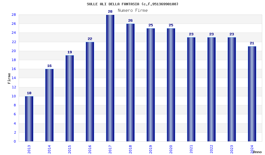| Anno | Firme | Importi | Media | Naz. | Reg. | Prov. | Comu. |