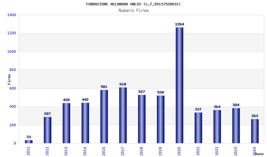 | Anno | Firme | Importi | Media | Naz. | Reg. | Prov. | Comu. |