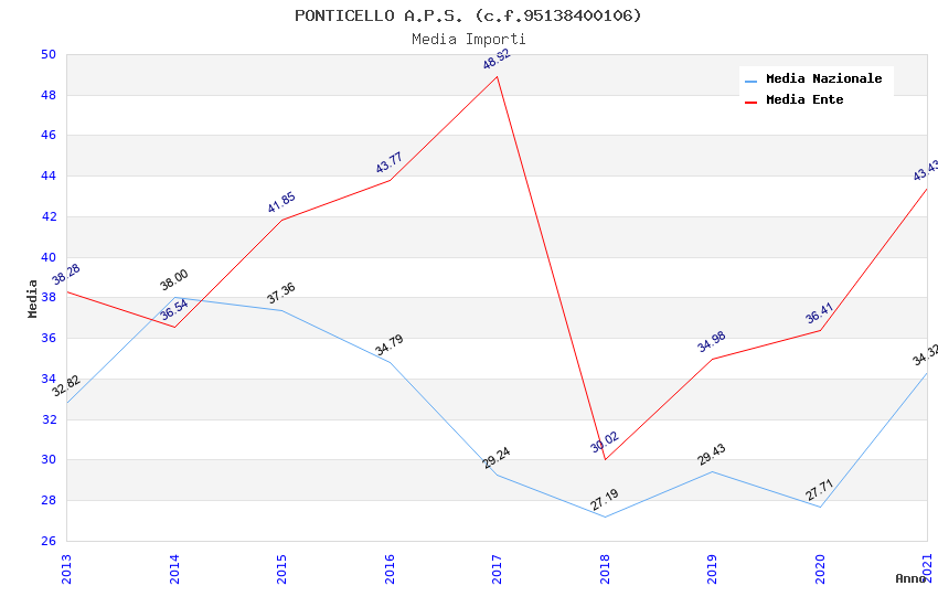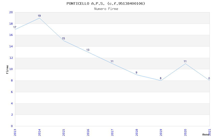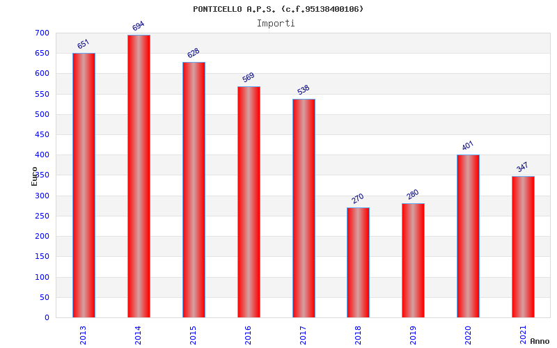 | Anno | Firme | Importi | Media | Naz. | Reg. | Prov. | Comu. |