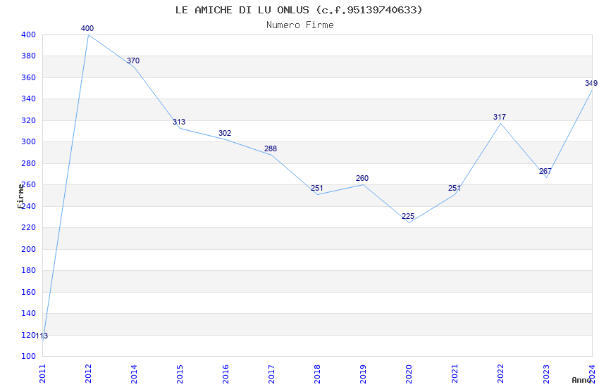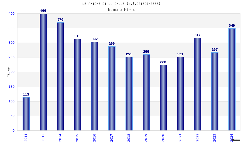 | Anno | Firme | Importi | Media | Naz. | Reg. | Prov. | Comu. |