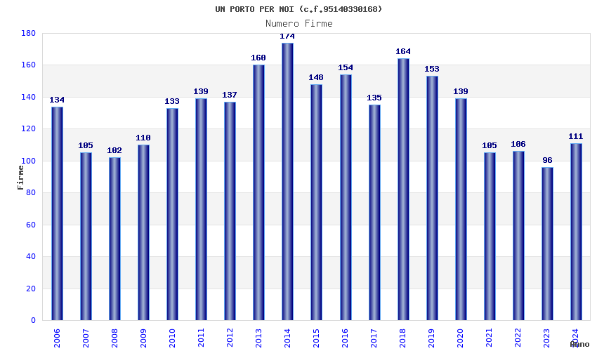 | Anno | Firme | Importi | Media | Naz. | Reg. | Prov. | Comu. |