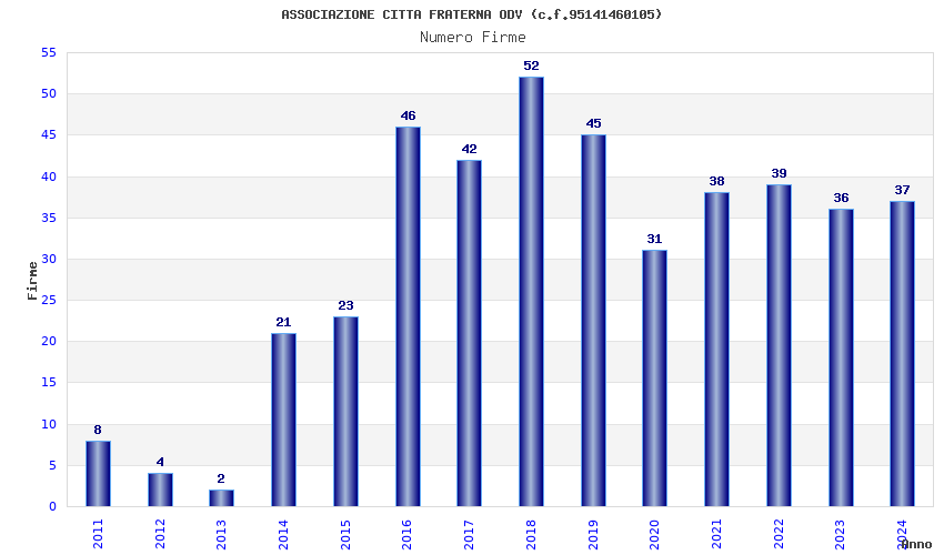 | Anno | Firme | Importi | Media | Naz. | Reg. | Prov. | Comu. |