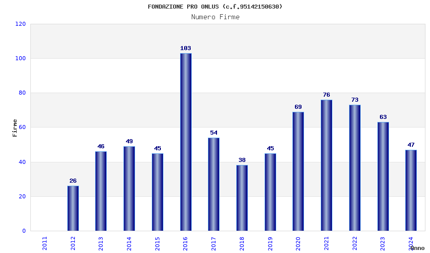 | Anno | Firme | Importi | Media | Naz. | Reg. | Prov. | Comu. |