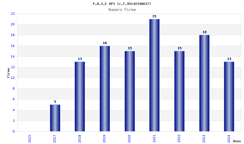 | Anno | Firme | Importi | Media | Naz. | Reg. | Prov. | Comu. |