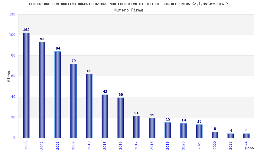 | Anno | Firme | Importi | Media | Naz. | Reg. | Prov. | Comu. |