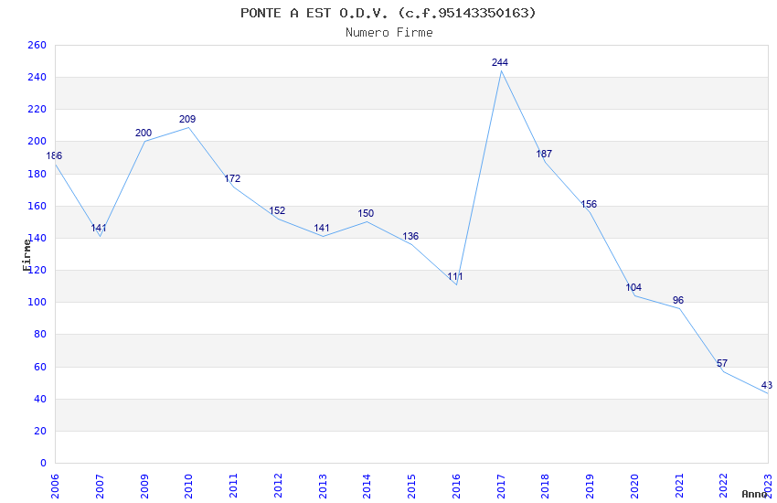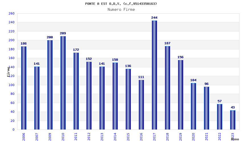 | Anno | Firme | Importi | Media | Naz. | Reg. | Prov. | Comu. |