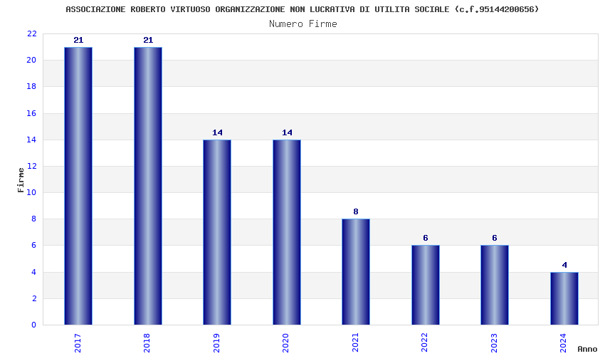 | Anno | Firme | Importi | Media | Naz. | Reg. | Prov. | Comu. |