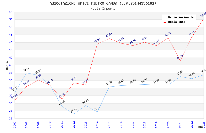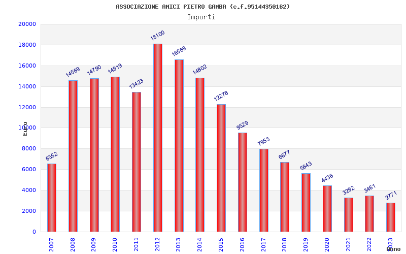 | Anno | Firme | Importi | Media | Naz. | Reg. | Prov. | Comu. |