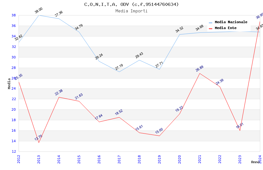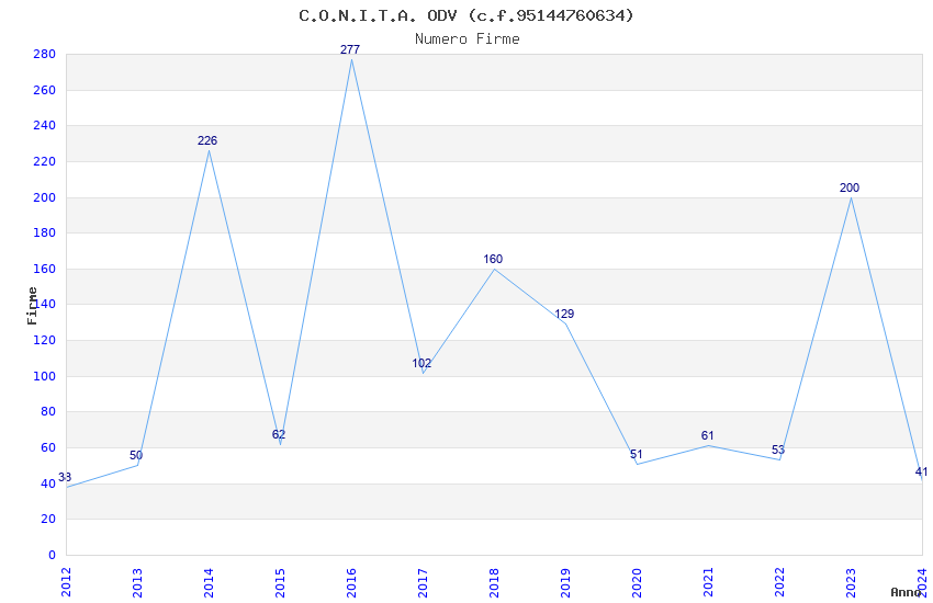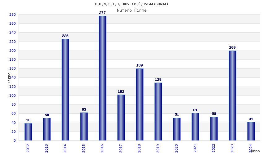 | Anno | Firme | Importi | Media | Naz. | Reg. | Prov. | Comu. |
