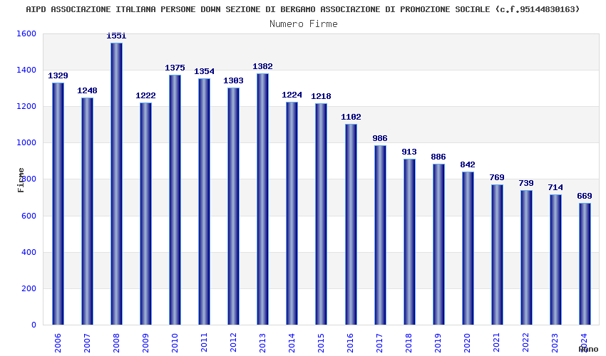 | Anno | Firme | Importi | Media | Naz. | Reg. | Prov. | Comu. |