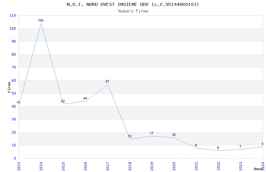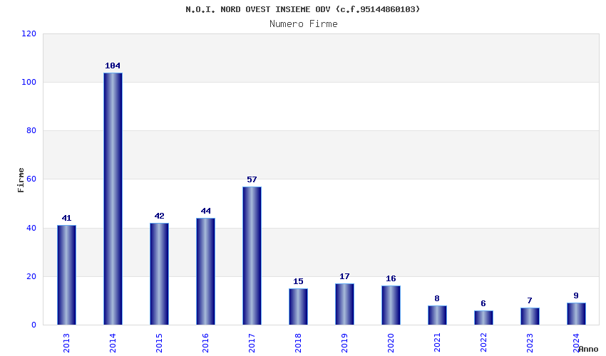 | Anno | Firme | Importi | Media | Naz. | Reg. | Prov. | Comu. |