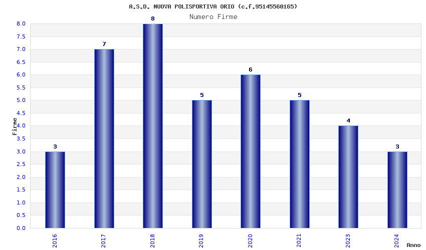 | Anno | Firme | Importi | Media | Naz. | Reg. | Prov. | Comu. |