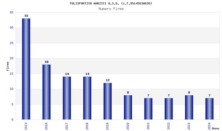 | Anno | Firme | Importi | Media | Naz. | Reg. | Prov. | Comu. |
