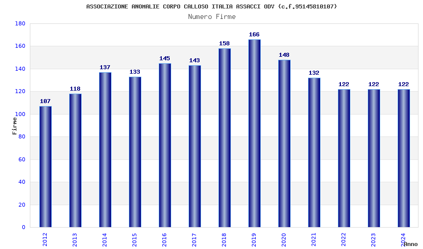 | Anno | Firme | Importi | Media | Naz. | Reg. | Prov. | Comu. |