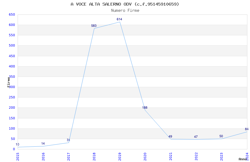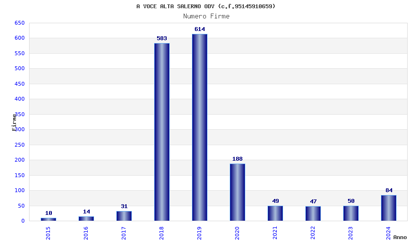 | Anno | Firme | Importi | Media | Naz. | Reg. | Prov. | Comu. |