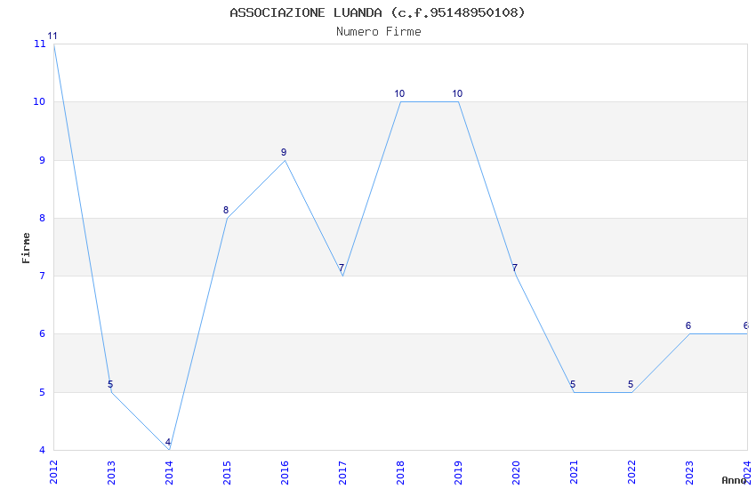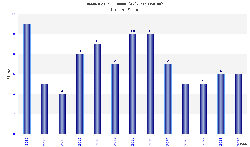 | Anno | Firme | Importi | Media | Naz. | Reg. | Prov. | Comu. |