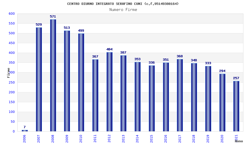 | Anno | Firme | Importi | Media | Naz. | Reg. | Prov. | Comu. |