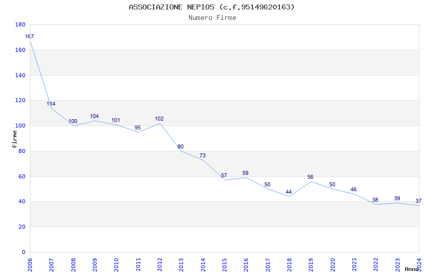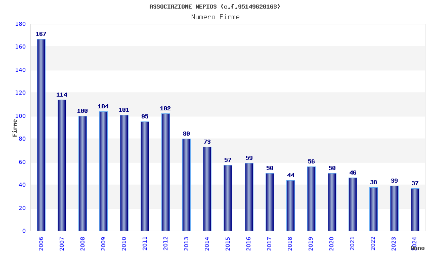 | Anno | Firme | Importi | Media | Naz. | Reg. | Prov. | Comu. |