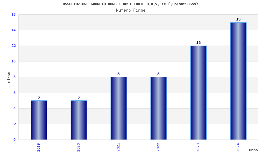 | Anno | Firme | Importi | Media | Naz. | Reg. | Prov. | Comu. |