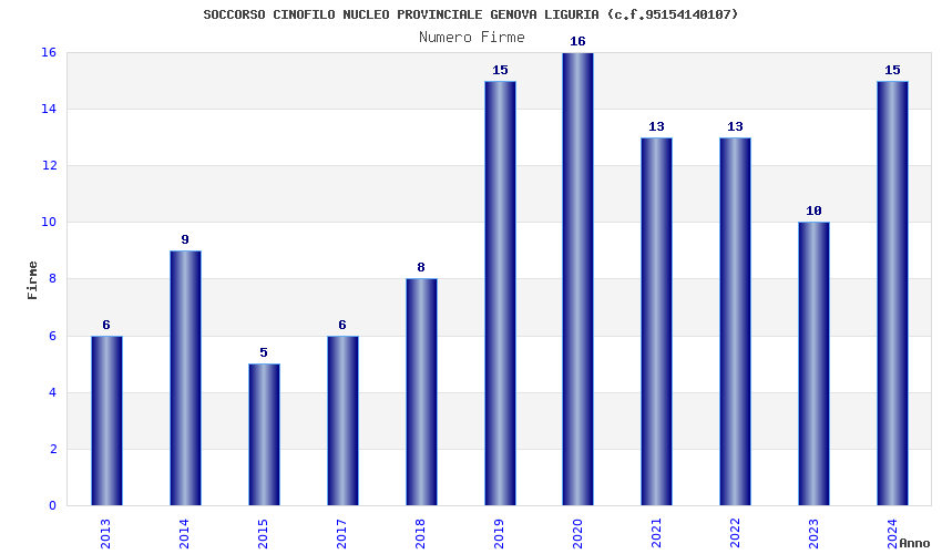 | Anno | Firme | Importi | Media | Naz. | Reg. | Prov. | Comu. |