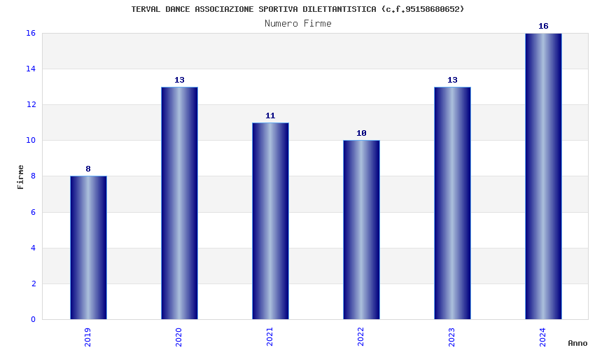 | Anno | Firme | Importi | Media | Naz. | Reg. | Prov. | Comu. |