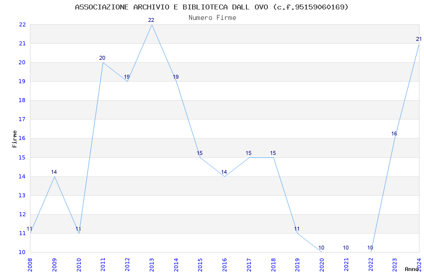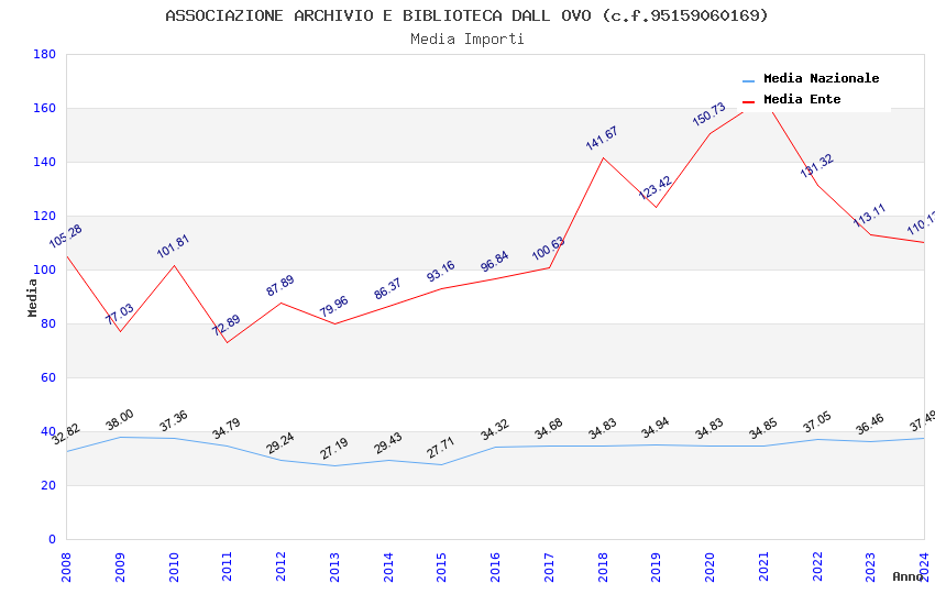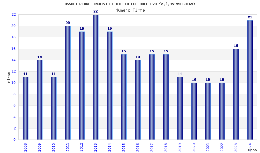 | Anno | Firme | Importi | Media | Naz. | Reg. | Prov. | Comu. |