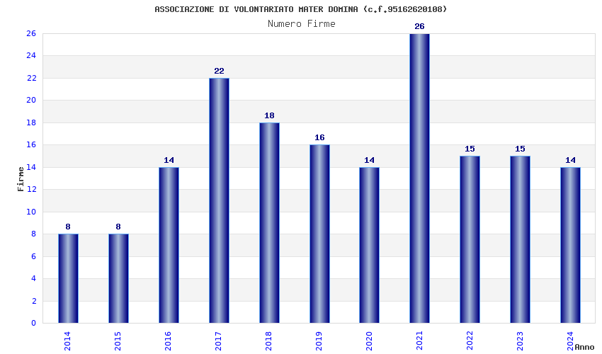 | Anno | Firme | Importi | Media | Naz. | Reg. | Prov. | Comu. |