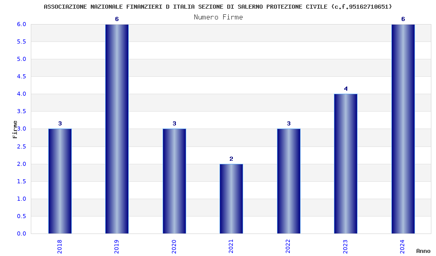 | Anno | Firme | Importi | Media | Naz. | Reg. | Prov. | Comu. |