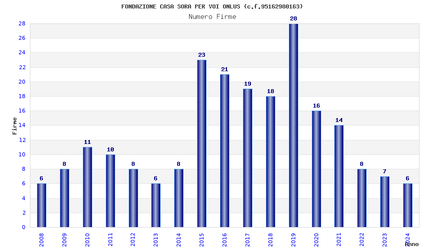 | Anno | Firme | Importi | Media | Naz. | Reg. | Prov. | Comu. |