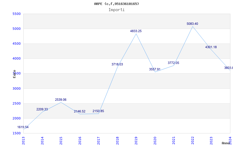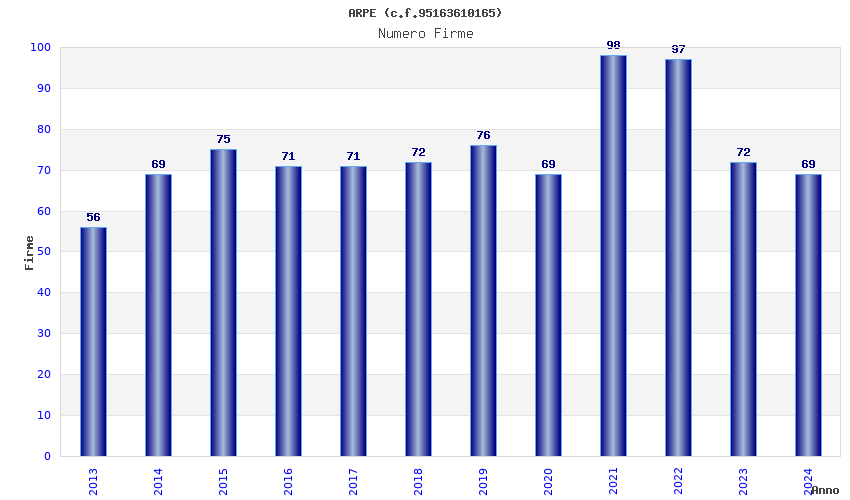 | Anno | Firme | Importi | Media | Naz. | Reg. | Prov. | Comu. |
