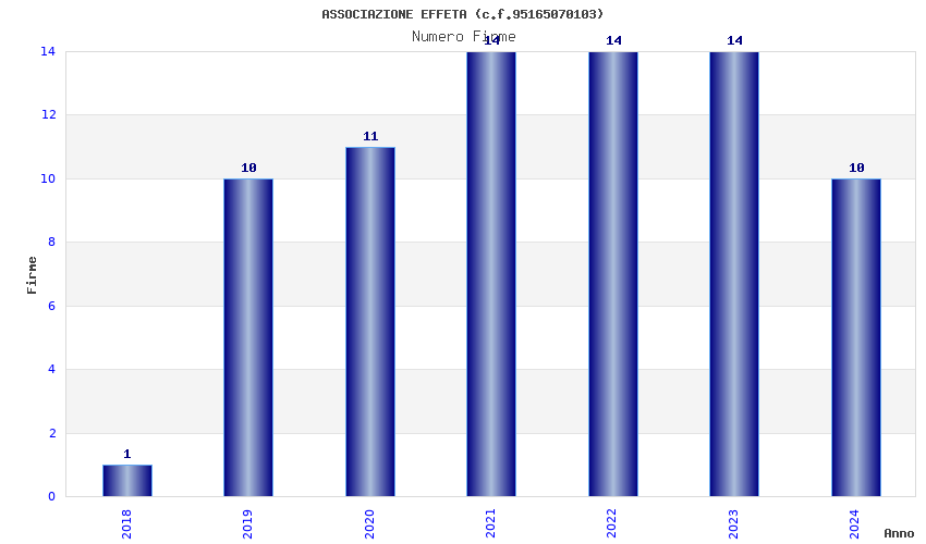 | Anno | Firme | Importi | Media | Naz. | Reg. | Prov. | Comu. |