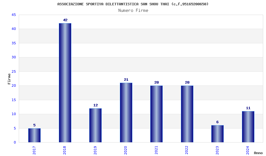 | Anno | Firme | Importi | Media | Naz. | Reg. | Prov. | Comu. |