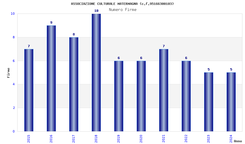 | Anno | Firme | Importi | Media | Naz. | Reg. | Prov. | Comu. |