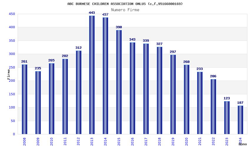 | Anno | Firme | Importi | Media | Naz. | Reg. | Prov. | Comu. |