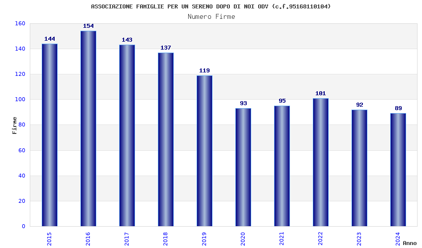 | Anno | Firme | Importi | Media | Naz. | Reg. | Prov. | Comu. |