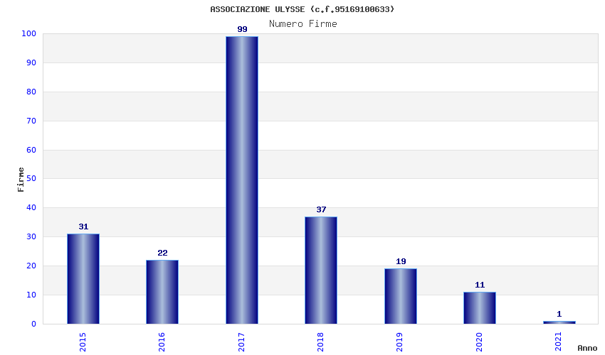 | Anno | Firme | Importi | Media | Naz. | Reg. | Prov. | Comu. |