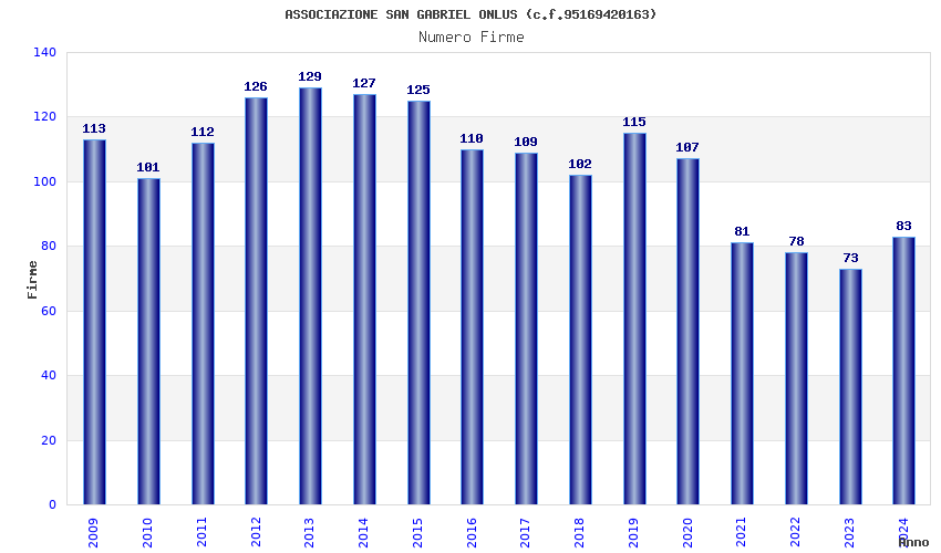 | Anno | Firme | Importi | Media | Naz. | Reg. | Prov. | Comu. |