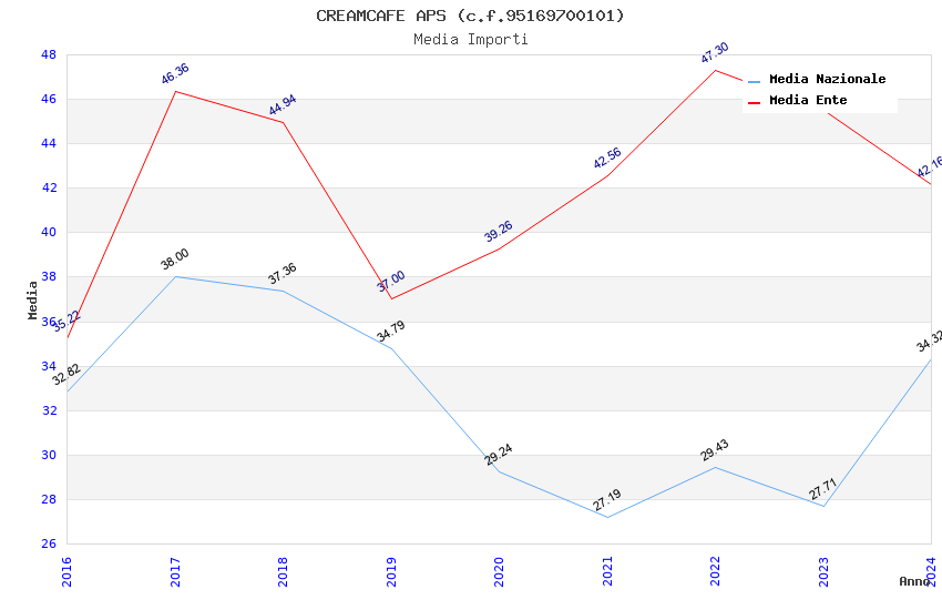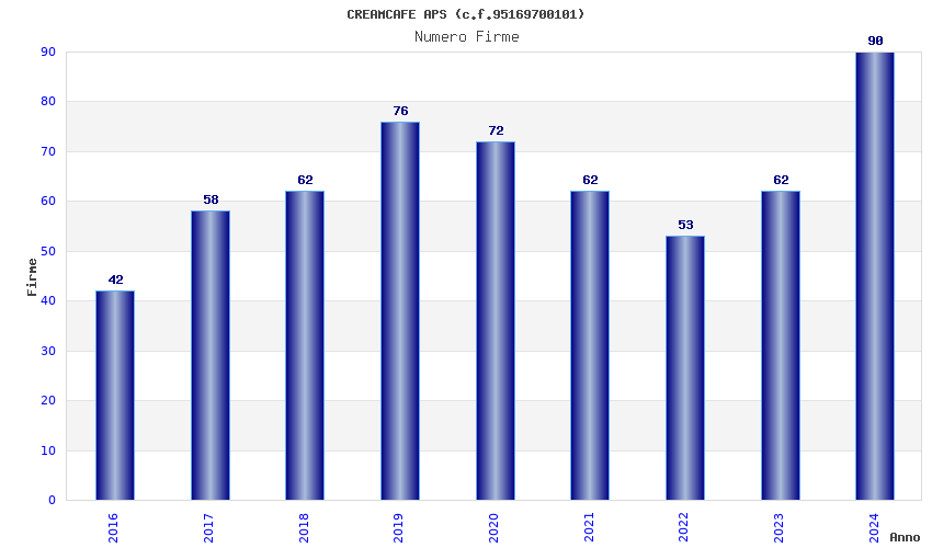 | Anno | Firme | Importi | Media | Naz. | Reg. | Prov. | Comu. |