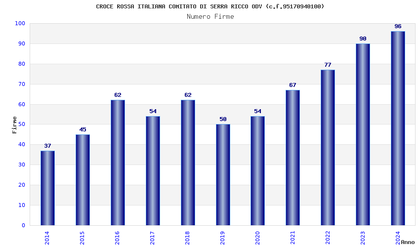 | Anno | Firme | Importi | Media | Naz. | Reg. | Prov. | Comu. |