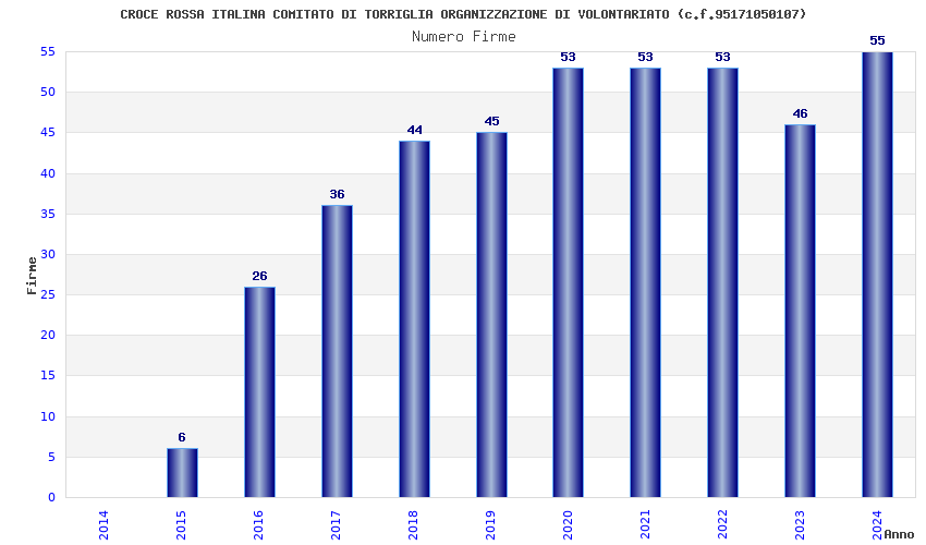| Anno | Firme | Importi | Media | Naz. | Reg. | Prov. | Comu. |