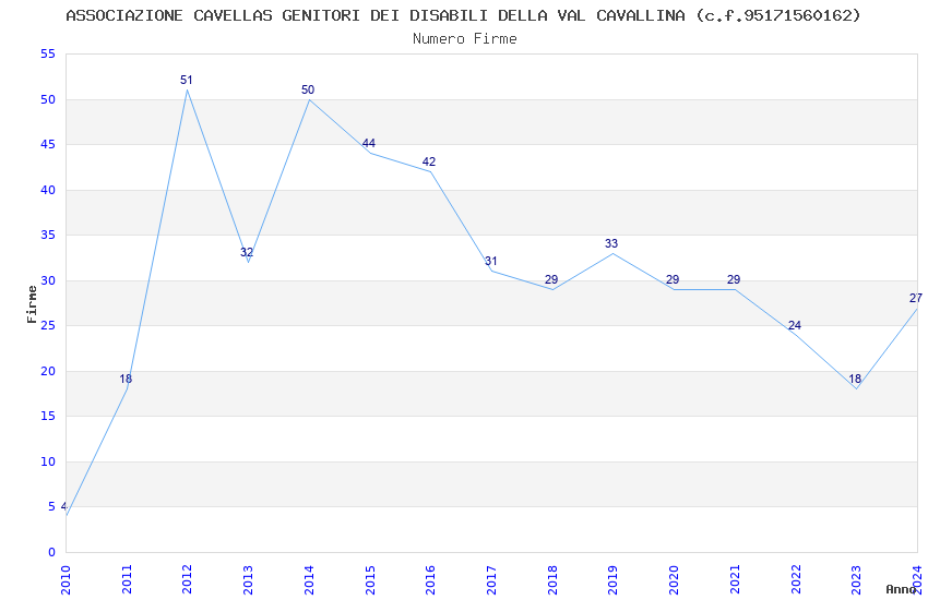 | Anno | Firme | Importi | Media | Naz. | Reg. | Prov. | Comu. |