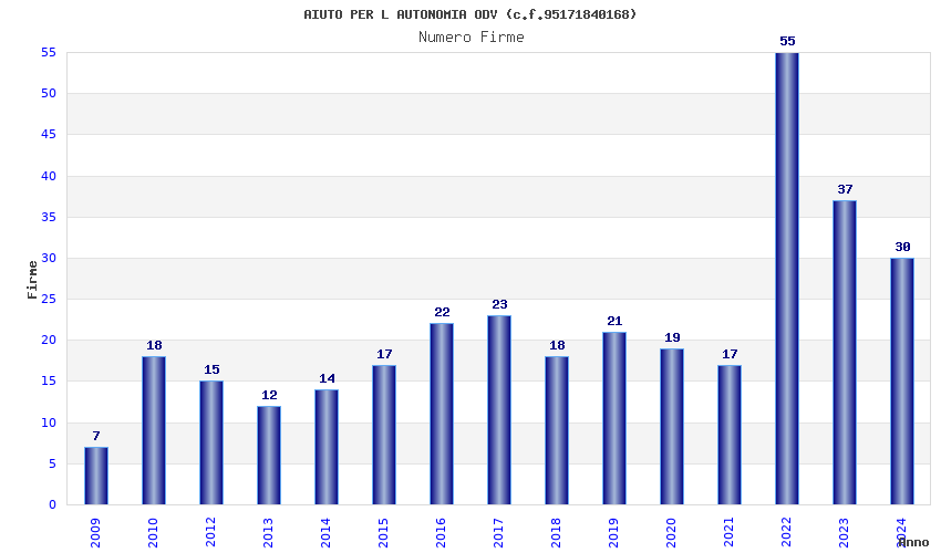 | Anno | Firme | Importi | Media | Naz. | Reg. | Prov. | Comu. |