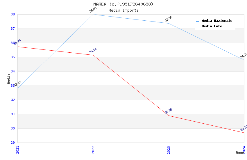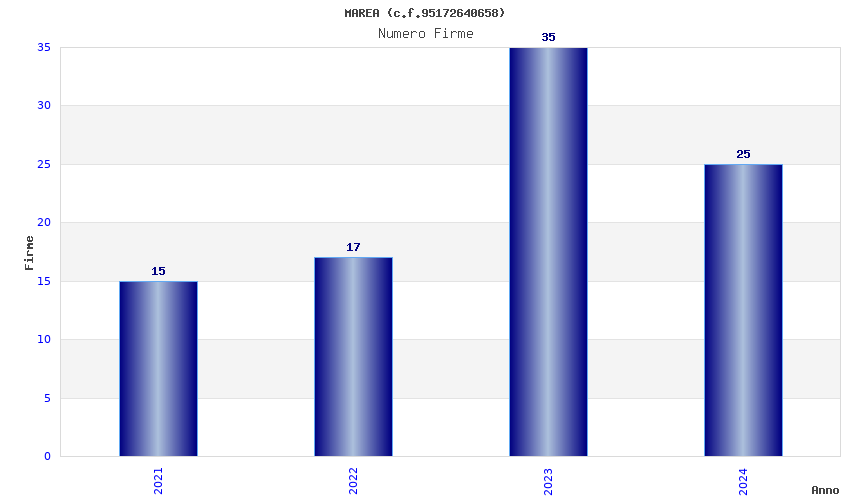 | Anno | Firme | Importi | Media | Naz. | Reg. | Prov. | Comu. |